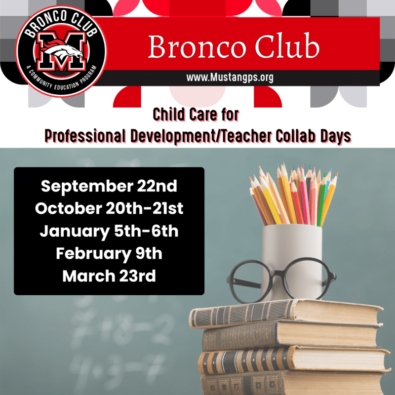 Mustang Public Schools Bronco Club Program provides afterschool care and summer camps for your child and is run by certified teachers and administrators.